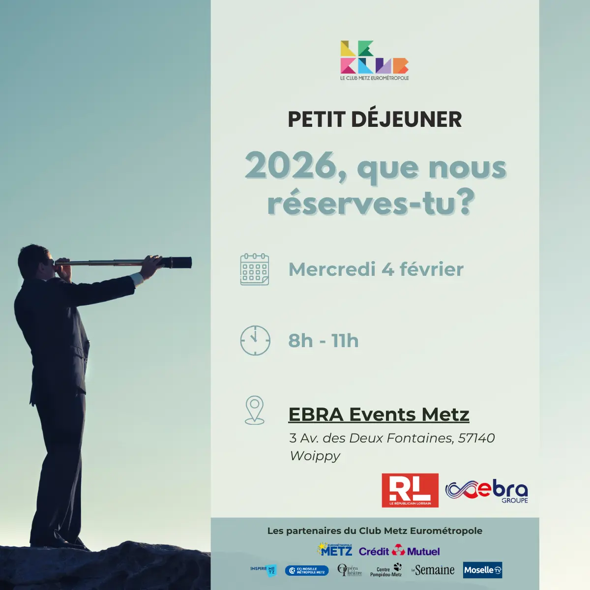 Le Club Metz Eurométropole vous invite à son premier petit-déjeuner thématique de l’année, consacré aux enjeux, tendances et perspectives de 2026 ce mercredi 4 février 2026.